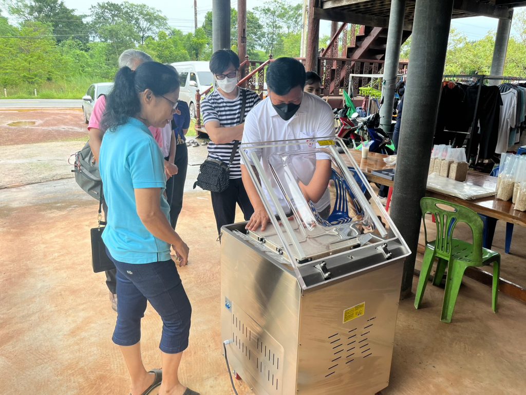 ผู้ช่วยศาสตราจารย์ ดร.ปกรณ์เกียรติ์ เศวตเมธิกุล รองคณบดีคณะครุศาสตร์อุตสาหกรรม มหาวิทยาลัยเทคโนโลยีราชมงคลธัญบุรี พร้อมคณะทีมงานลงพื้นจัดโครงการถ่ายทอดองค์ความรู้และพัฒนากระบวนการแปรรูปผลิตภัณฑ์ชุมชนด้วยภูมิปัญญาท้องถิ่น ร่วมกับผู้นำชุมชน ภายในกิจกรรมมีการให้ความรู้การต่อยอดผลิตภัณฑ์ขนมจีนเส้นสดและผลิตภัณฑ์น้ำตาลสด การเพิ่มมูลค่า การทำพาร์ทเจอไรด์เครื่องดื่ม การยืดอายุของเส้นขนมจีน การแปรรูปขนมจีน และส่งเสริมเทคนิคการขายในตลาดออนไลน์ในแพลตฟอร์มออนไลน์ช่องทางต่าง ๆ เพื่อเพิ่มรายได้ให้กับชุมชน ณ องค์การบริหารส่วนตำบลหนองแก้ว อำเภอประจันตคาม จังหวัดปราจีนบุรี ระหว่างวันที่ 19-20 กันยายน 2565